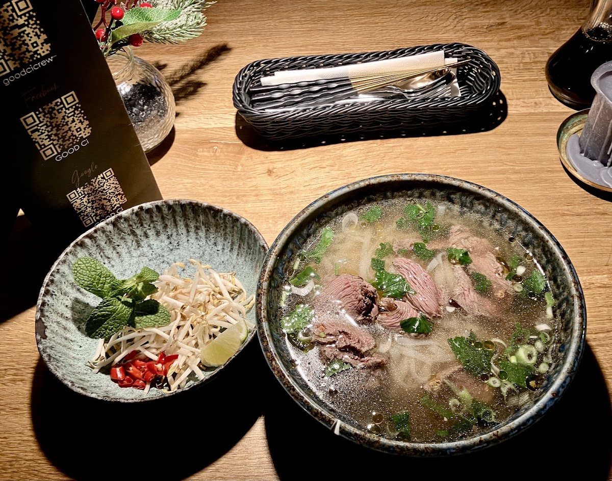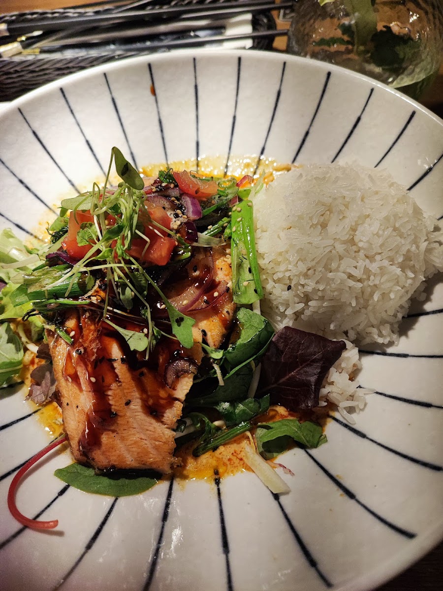 First visit and I was impressed. I had rice noodles with grilled salmon and medium spicy sauce. It was an incredible volume of different spices and ingredients. Salmon was fantastic and it was bigger than it seems in the photo or I could have imagined. The interior is stunning and the atmosphere is very comfortable and warm. The service is professional and quick. I highly recommend
